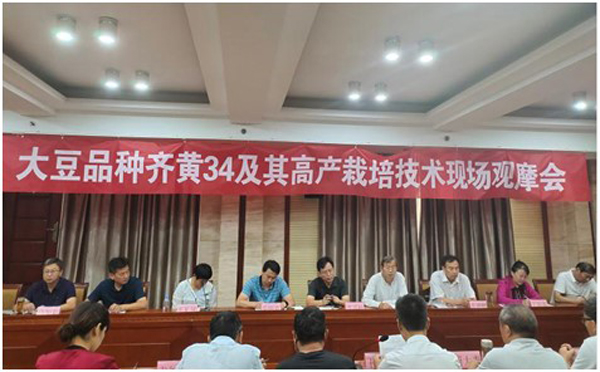9月19~20日,大豆品种齐黄34及其高产栽培技术现场观摩会在泰安市东平县州城街道召开。会议由山东省作物学会和山东省农科院作物所共同主办,东平县农业农村局承办,山东圣丰种业科技有限公司协办。山东省农技推广总站,山东省种子管理总站,各大豆主产地市县农技推广站和种子站,家庭农场、合作社和大豆种植大户代表60余人参加了会议。