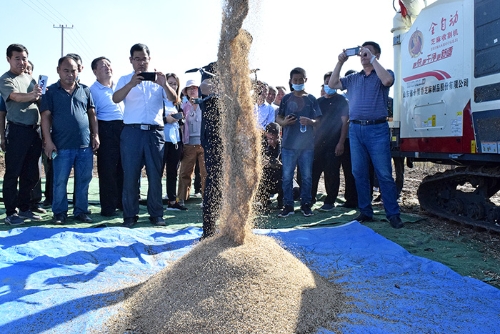 9月26日,“鲁引芝1号”(中芝75)机械化联合收获现场观摩会在无棣县十里香芝麻生态园召开。会议由中国农业科学院油料作物研究所、山东棉花研究中心、山东省作物学会和山东省十里香芝麻制品股份有限公司共同主办。中国农业科学院油料作物研究所、山东棉花研究中心、山东省农业机械科学研究院、滨州市农业农村局、无棣县委组织部、县政协、县科技局、县农业农村局及县棣丰街道等单位负责人、芝麻种植大户和新型经营主体共50余人参加了观摩会。