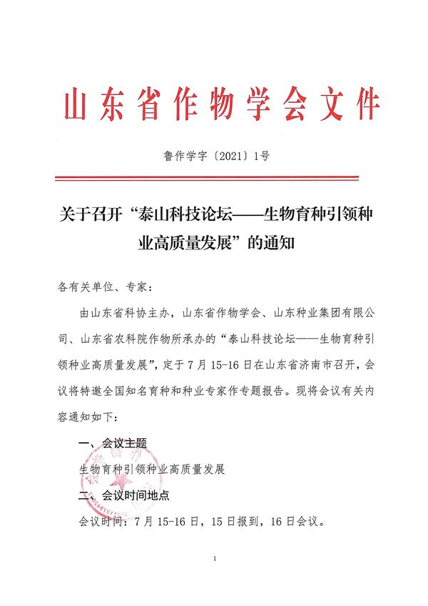 关于召开泰山科技论坛—生物育种引领种业高质量发展研讨会的通知