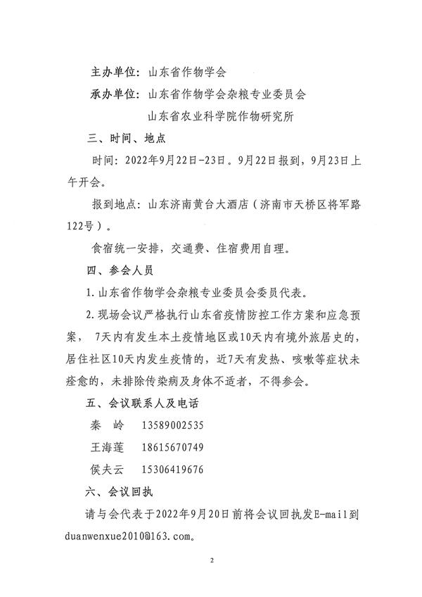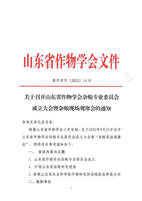 关于召开山东省作物学会杂粮专业委员会成立大会暨杂粮现场观摩会的通知